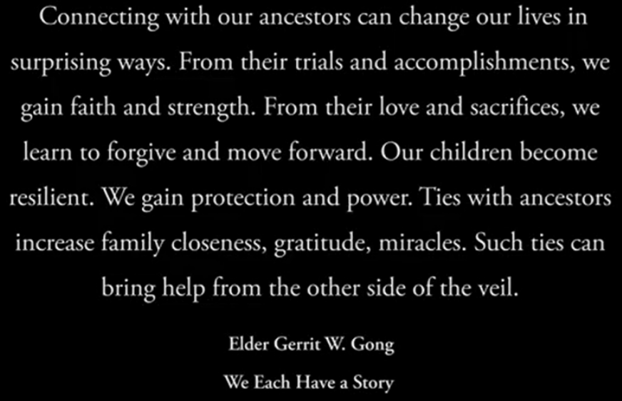“Family Stories directly impact how we see ourselves because they give us an idea of where we come from and how we fit into our family...Sharing family stories helps us to evaluate the actions of others and create meaning from the past. When facing challenges, we can draw strength from stories of relatives who also struggled with similar challenges and obstacles and were then able to overcome them.” (How Family Stories Shape Our Identities) Watch David Isay’s RootsTech presentation to see how family stories help make up our family history.