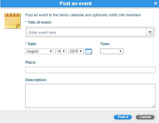 In your Home page you can set up Welcome text, post family news, invite people to your site, and more.