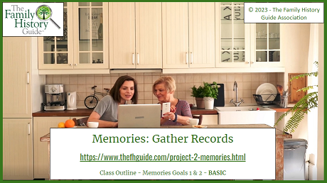Terms of Use: Each Class Outlines slide is ©2024 The Family History Guide Association. You may download the slides and modify their speaker notes as needed. The slide may not be modified in other ways without written permission from The Family History Guide Association. You may distribute a modified copy of these slides so long as a) the other content and copyright statements remain intact, and b) you add a "Modified by (your name)" statement at the beginning of the speaker notes. Content: Basic level classes are noted by the green text and green border on the slide, while Interm. class outlines use a blue color scheme. Each class usually covers one Goal in The Family History Guide. You can remove or add content in your downloaded version of the speaker notes to expand or shrink coverage. Note: To view or edit speaker notes, open the slide and drag the short bar below the slide picture upwards.) As you study the articles and videos in the speaker notes, we recommend you add your own personal notes for points you want to explain further or emphasize. Note : The length of each class will vary from about 30 to 45 minutes, depending on the discussions and participation. For example, if there are 10 speaker notes in a slide, spending 3 minutes per note will cover about 30 minutes, and 4 minutes per note covers abut 40 minutes. Q&A and exercises can be added for in-person classes or interactive Zoom sessions. Presenting: To run the presentation, in Google Slides click the down-arrow next to Slideshow (top) and select "Presenter view." The speaker notes appear in a separate window from the slides. In the first slide, click the URL to open the subject matter in The Family History Guide. Then follow the speaker notes to present the material for the class. If you are presenting remotely, make sure you share only the current window with The Family History Guide website, not your entire desktop with the speaker notes window. Each link you open from The Family History Guide appears in a new browser tab. You can close them to return to the current page in The Family History Guide. Followup: Those who attend the presentation can review the material simply by accessing this page—https://www.thefhguide.com/train-class-outlines.html—and selecting the class outline to view or download. The speaker notes become the study framework, and the articles and videos can be reviewed in more depth. To locate the articles and videos from the speaker notes more easily in the Choice steps, you can mark their Resource Stars so they stand out on the web page (requires a free Online Tracker account).